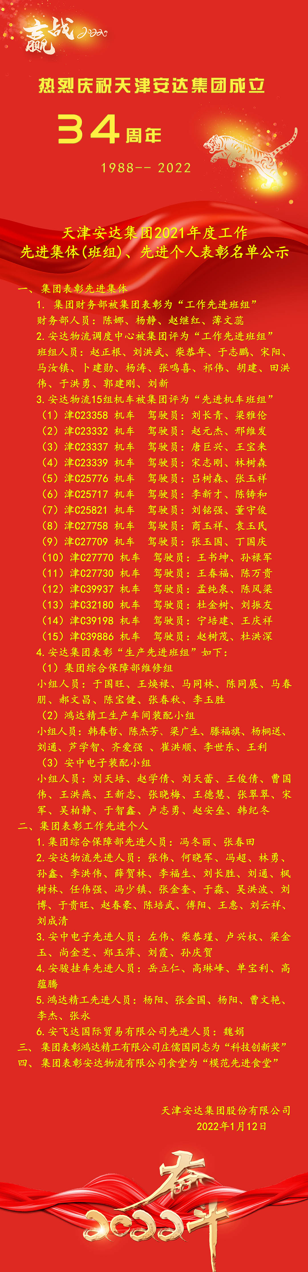 现将表彰的先进集体和先进个人进行公示,望所有受表彰人员能够再接再励,再创佳绩。展望2022年,将是强化改革、战胜疫情的转折之年,更是夯实基础、强力发展的关键之年。赢博(中国)集团将面临机遇,迎接挑战,希望广大党员和职工群众团结一致、紧抓机遇,激励斗志、提高效益,结合国家发展战略,促进企业稳步发展。
