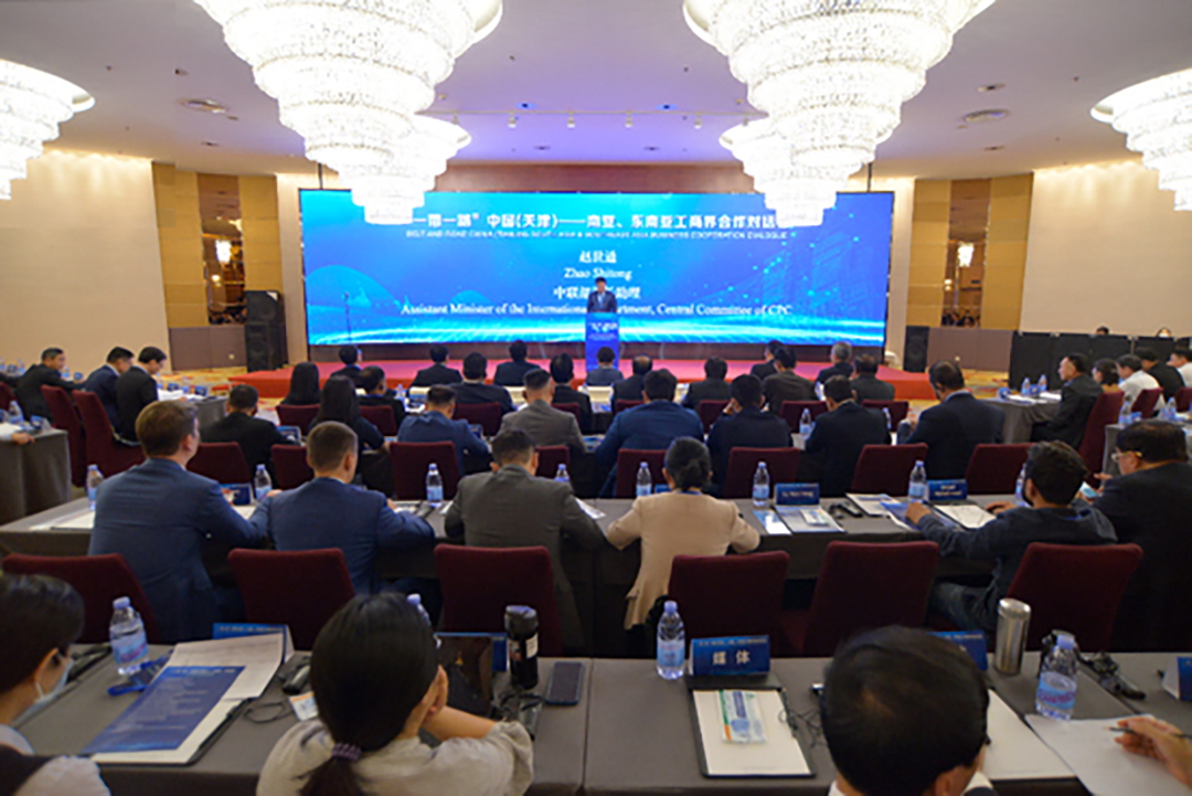 9月22日,由中国经济联络中心和天津市人民政府外事办公室共同主办的“一带一路”中国(天津)—南亚、东南亚工商界合作对话会在津举办。来自南亚、东南亚7个国家的政界、工商界人士和本市有关部门及重点企业代表百余人参会。赢博(中国)集团党委书记、董事长崔洪金作为天津市现代物流协会会长受邀参会,并参与分组座谈。与会人员围绕“把握中国式现代化合作机遇,推动共建‘一带一路’高质量发展”主题进行充分沟通和交流。