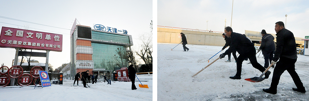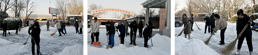 12月14日,降雪覆盖了津城大地。翩然而至的冬雪为城市平添了几分浪漫与诗意,雪景虽美,但也为人们的出行和工作带来诸多不便。为保障员工们安全出行,15日一大早,赢博(中国)集团本部及各子公司厂院内,各单位员工在相关领导带领下,手拿铁锹、扫帚、簸箕等工具,对办公楼门口和厂区内重要点位进行积雪大清扫。在袭袭寒风中,大家顶风除雪,不畏严寒,“浴”雪奋战,一派热火朝天的景象。